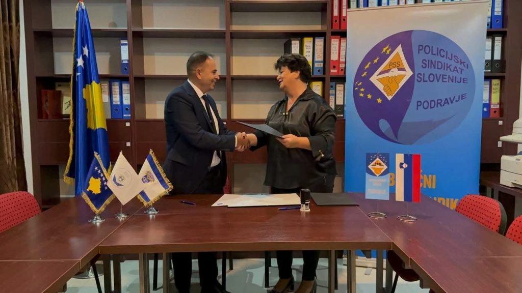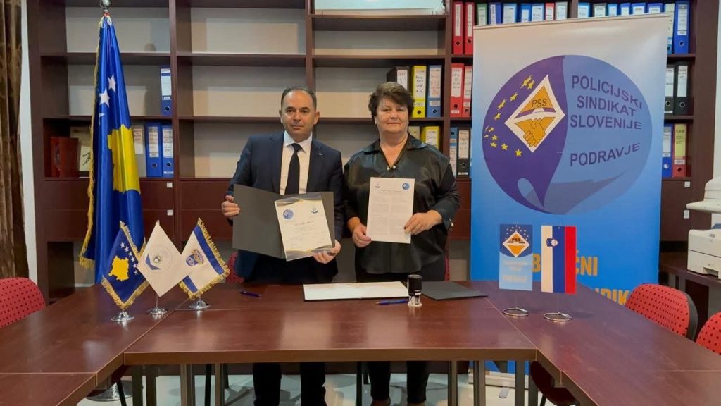 The agreement was signed by Avdi Hoti, Chairman of the Kosovo Police Trade Union, and Anita Arzenšek, President of the Slovenian Police Union – OPS Podravje, laying the foundations for a sustainable and equal partnership between the two organizations.